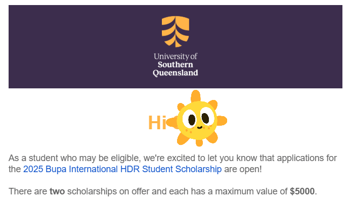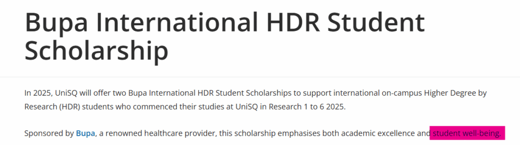 หลังจากได้เริ่มบทบาทการเป็นนักเรียนปริญญาเอกมาประมาณ 6 เดือน วันหนึ่งเราก็ได้รับอีเมลจากทางมหาลัยฯเกี่ยวกับการให้ทุน ซึ่งทุนทุนนี้มีมูลค่ามากถึง 5,000 ดอลลาร์(ออสเตรเลีย) เรื่องอย่างนี้เราไม่รอช้า จึงรีบคลิกอ่านอีเมลว่าเป็นทุนเกี่ยวกับอะไร? คุณสมบัติของผู้สมัครจะต้องมีอย่างไรบ้าง? จากข้อมูลพบว่าเป็นทุน Bupa International HDR Student Scholarship ซึ่งไม่ต้องบอกก็รู้กันอยู่แล้วว่าทุนนี้สนับสนุนโดย BUPA ชื่อที่นักเรียนต่างชาติหลายคนคุ้นหู เพราะเป็นข้อบังคับที่รู้กันว่าหากคุณจะสมัครเรียนในประเทศออสเตรเลียคุณจะต้องมีประกันสำหรับนักเรียนต่างชาติ ซึ่งข้อดีของมันก็คือหากเราเจ็บป่วยหรือไม่สบายเราสามารถเคลมประกันตรงนี้ได้ (อย่างไรก็ตาม อย่าลืมศึกษาและอ่านรายละเอียดของประกันที่คุณได้ทำกับบริษัทนั้นๆ) สำหรับเราเองเราสมัครประกันสำหรับนักเรียนต่างชาติกับบริษัท BUPA มาตั้งแต่เรามาเรียนป.โทตั้งแต่ปี 2022 แล้ว จนตอนนี้เรียนป.เอกที่ออสเตรเลียในขณะนี้ เราก็ยังเป็นลูกค้าอย่างเหนียวแน่นกับ BUPA ค่ะ